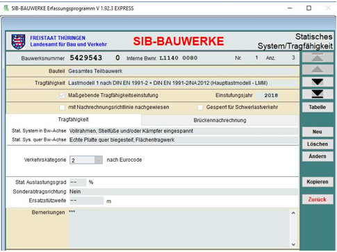 Erfassen der Bauwerksdaten in Form eines Bauwerksbuches nach Vorgabe der DIN 1076 mit einem Erfassungsprogramm auf der Datenbasis der ASB-ING.